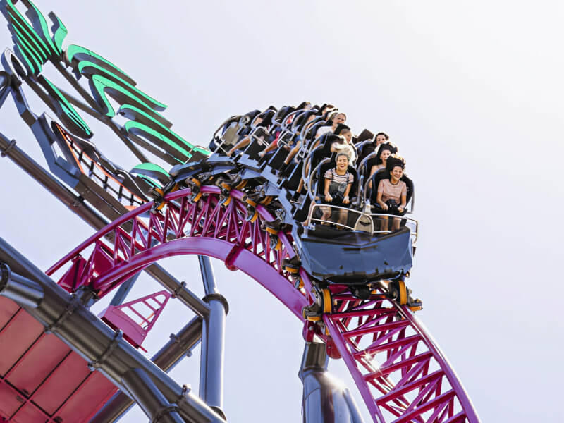 Just a short drive from the coast, you'll find some of Australia's top theme parks including Dreamworld, Warner Bros. Movie World, and Wet'n'Wild. Perfect for families and thrill-seekers alike, these parks offer a mix of roller coasters, water slides, live shows and animal encounters.